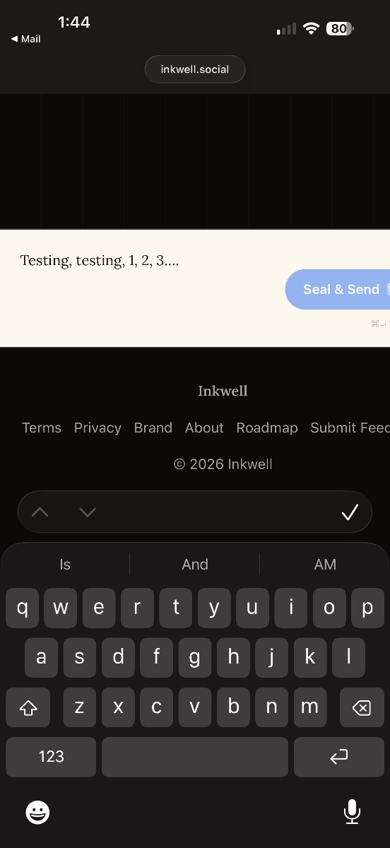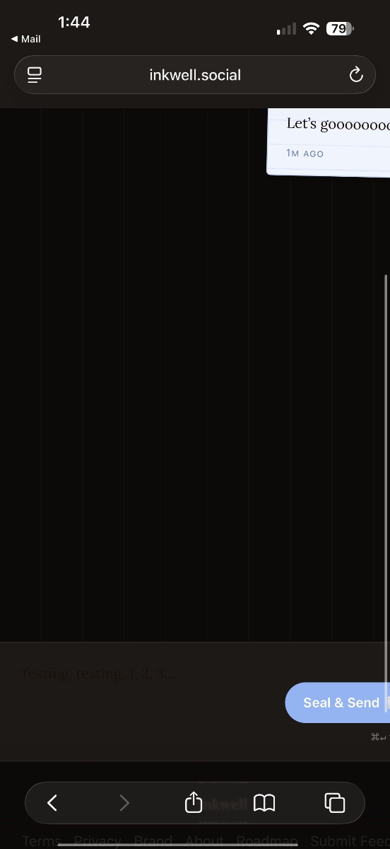 When you go to enter a letter, the text box will appear white and display text appropriately. However, when clicking/tapping out of it (say, to scroll up to read a previous letter) the text box turns black, which hides the black font and makes it look like the text is gone.